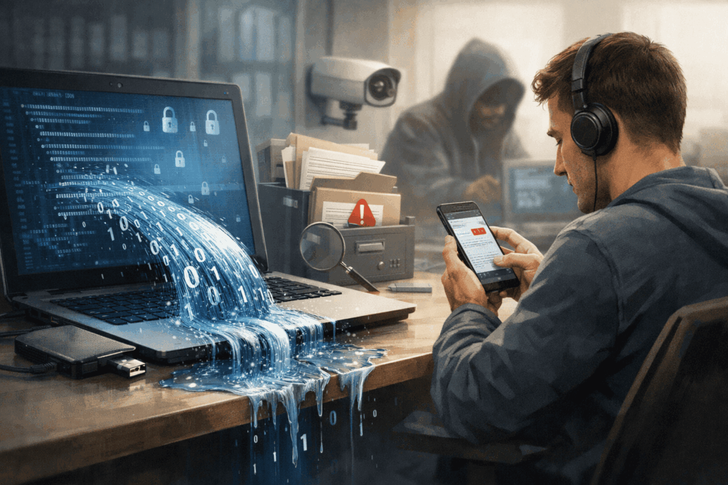 - Filtraciones internas: Ocurren cuando empleados o colaboradores tienen acceso a datos sensibles y los comparten sin autorización. Esto puede ser intencional o por descuidos, como enviar archivos a correos personales o utilizar memorias externas sin control.